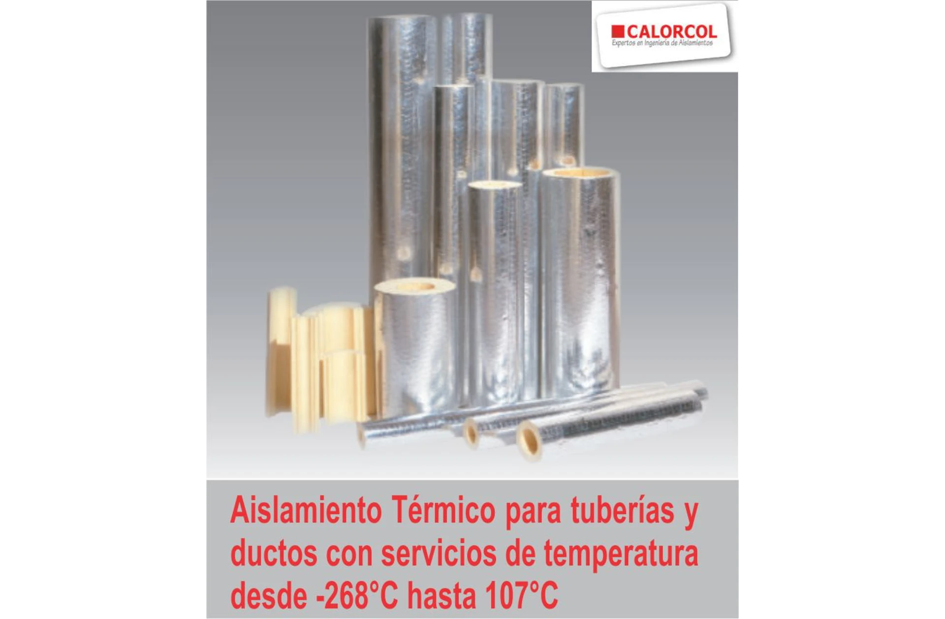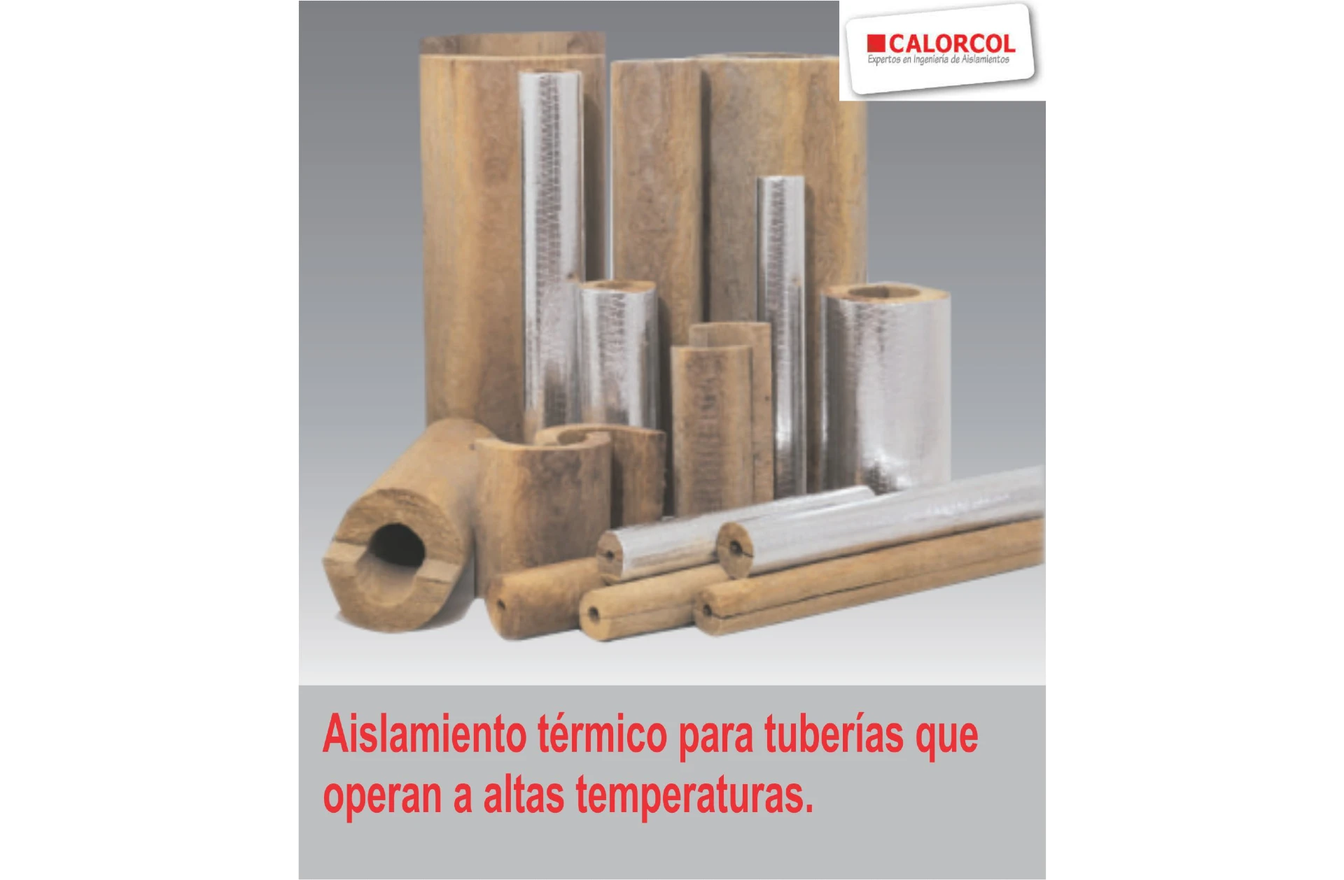 Aislamiento acústico y térmico de lana mineral de vidrio biosoluble rígida, preformada, presentada en secciones de área transversal semicircular, en dimensiones ajustadas a los diámetros externos reales de tubos de acero comercial. El material consiste de fibras de vidrio aglomeradas con resina termo-resistente. La cara externa puede llevar una barrera de vapor tipo foil de aluminio reforzado con malla de fibra de vidrio y papel kraft (FRK).