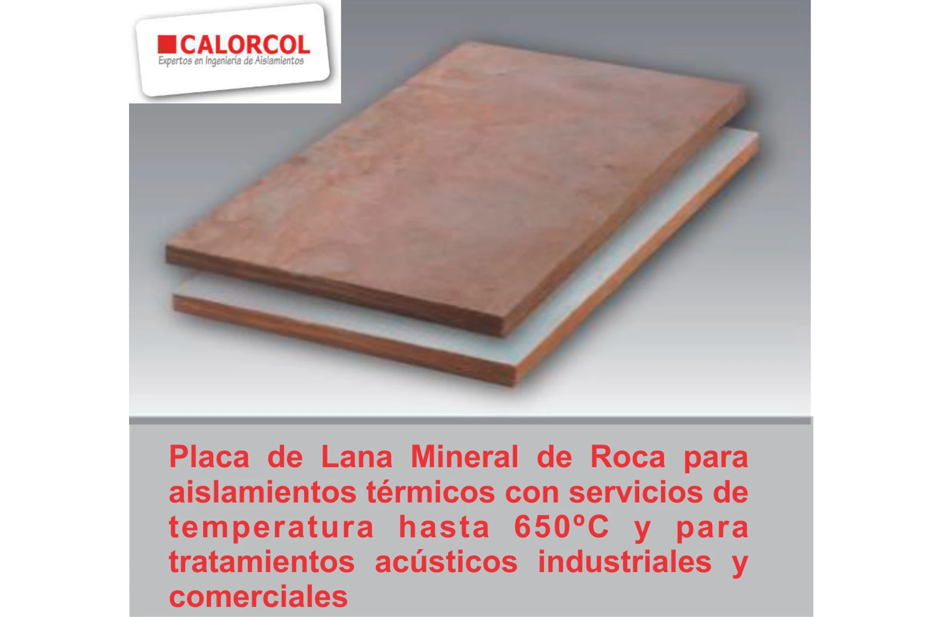 Bloques aislantes preformados, planos y rígidos de Lana Mineral de Roca aglutinados con resina sintética. Tiene gran resistencia mecánica y no se desmorona cuando está sometido a vibraciones, es de fácil aplicación y uso; puede ser cortado, clavado y pinnado, sin perder sus propiedades térmicas y acústicas. La Placa Térmica es incombustible, no corrosiva, no despide ni retiene olores, no es hábitat apto para bacterias ni hongos, es 100 % libre de asbesto, no suelta fi¬bra ni polvos en presencia de corrientes de aire, es de alta densidad e indicada para trabajar en superfi¬cies de 650°C, con una densidad nominal de 120 kg/m³ que le concede una excelente resistencia térmica, acústica y mecánica (Consulte Placa Térmica en diferentes densidades). La resina termoestable que aglutina las fi¬bras minerales resiste temperaturas hasta de 650ºC en régimen continuo, pero las fi¬bras minerales resisten temperaturas superiores a los 900 ºC.